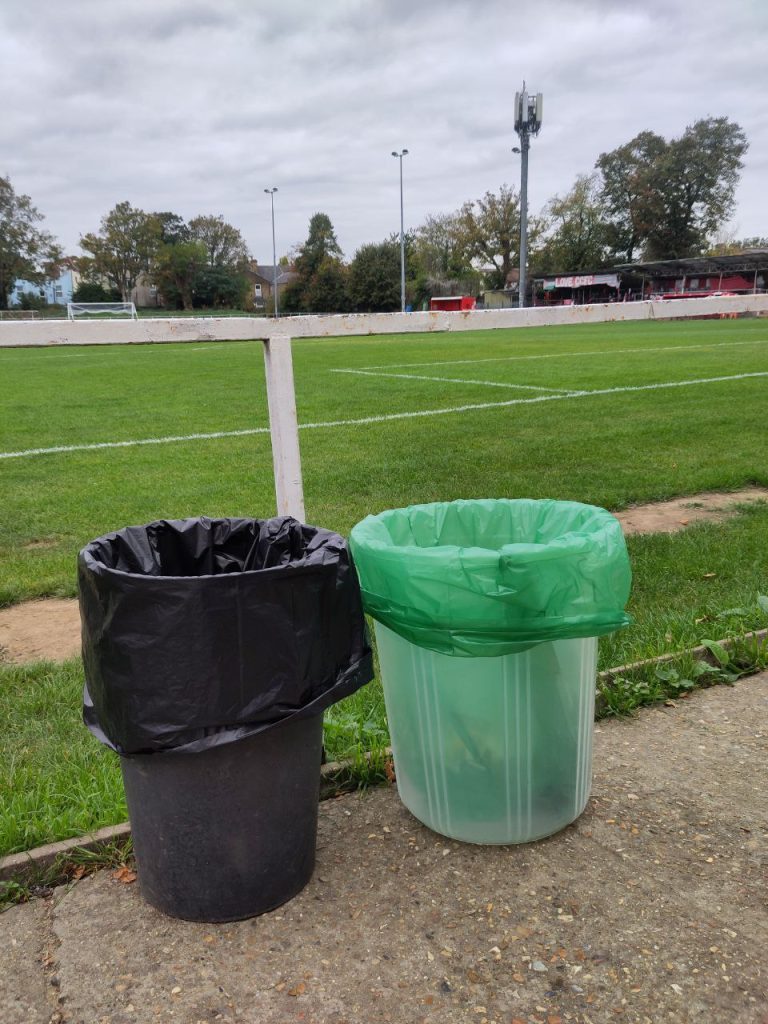 There are now two types of bin around the Old Spotted Dog Ground – black bin bags for general waste and green bin bags for recycling.
